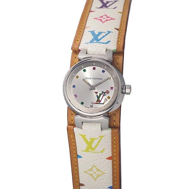 こちらの商品は質屋出品ですので、鑑定済みの本物の商品となります。詳しくは下記注意事項をご参照ください。 詳細:ルイ・ヴィトン LOUIS VUITTON タンブール ラブ 村上隆 Q12130 500本限定 サイズ:レディース 素材:SS フェイス カラー:シルバー ケース サイズ:約 2.8cm(リューズ含まず) ケース厚:0.8cm バンド サイズ(内周):最小 約13cm 最大 約17cm(純正バンド・純正尾錠)(遊環が欠損) バンド 最大幅:約 2.4cm バンド カラー:マルチカラー(革/使用感) 日差:無し 重量:46g(バンド込み) 駆動:クオーツ 付属品:説明書、保証書(2003/11 店舗印) 備考:6ヶ月保証付き。2002年のコレクション誕生以来人気が高く、定番として存在し続ける「タンブール」。こちらは日本を代表する芸術家"村上隆"とのコラボにより誕生した500本限定モデルです。バンドにシワ・汚れ・少し剥がれ・穴の広がりがあり使用感ございます。ケースに僅かなスレが残っておりますが、こちらは仕上済商品の為、状態の良いお品でございます。 ■ 状態: A+(仕上済) 商品番号: 5.12.6 5390