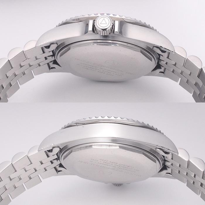 備考:6ヶ月保証付き。ヴィンテージ感と遊び心が見事に融合した、WMTならではの個性派モデル「シーダイバー」。太陽に焼けたような味わい深いトロピカルダイヤルにブルー×ピンクのツートーンベゼルが華やかさをを演出し、手元に抜群の存在感を与えてくれます。針に汚れとくすみがあり、全体的に傷やスレが見られますが、お気兼ねなくご使用いただけるお品となっております。