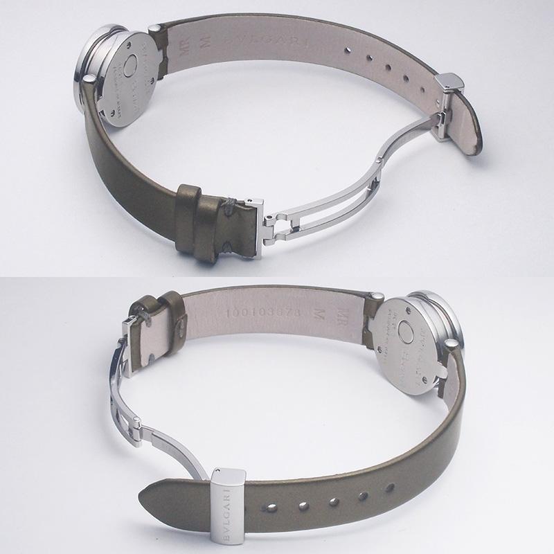 備考:6ヶ月保証付き。特徴的なデザインで高い人気を誇るブルガリの「B-zero1」。神秘的な輝きを放つシェルダイヤルが美しい一本です。2025年7月電池交換済み。バンドに金具跡・シワ・やや穴の広がりがあり少々使用感が見受けられます。ベゼルと裏蓋に小スレ、ループに剥がれ、バックルにわずかな傷が残っておりますが、こちらは仕上済商品の為、状態の良いお品でございます。