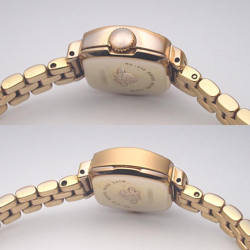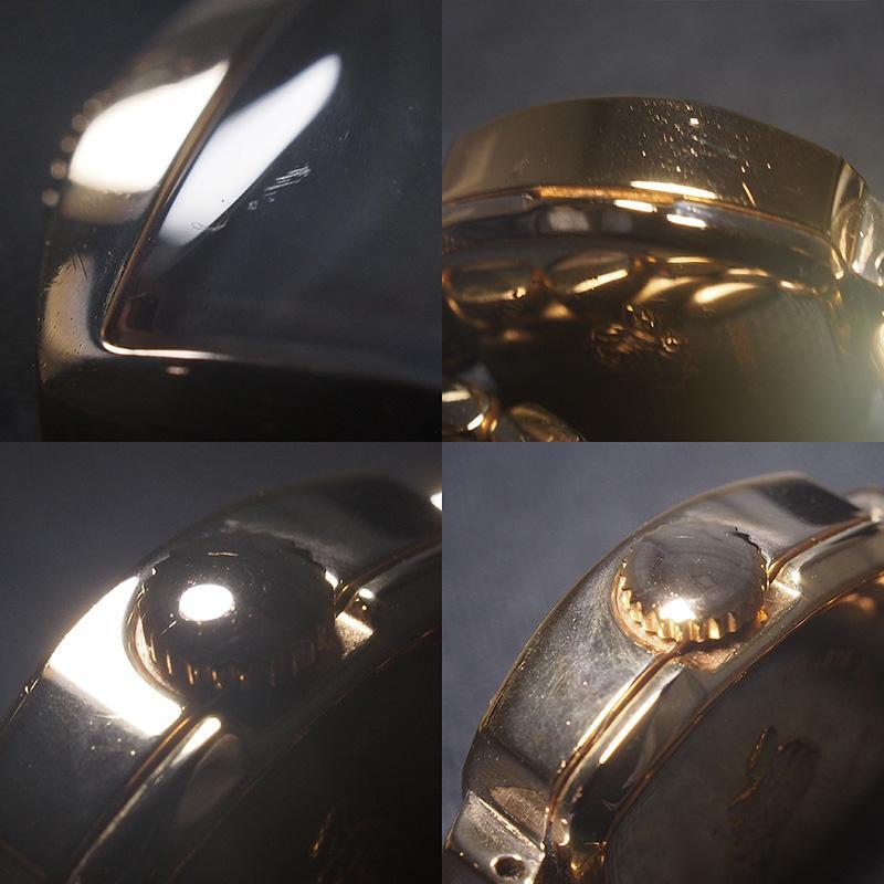 備考:6ヶ月保証付き。丸みを帯びたケースに上下8粒のジルコニアがあしらわれた、華やかな「アンティーク タッチ」です。少々色ムラがあり、インデックスに劣化による色の変化、風防に小スレ、ケース・リューズ・バンド・バックルに小傷、裏蓋に傷が見られますが、通常使用でお気兼ねなくご使用いただけるお品となっております。