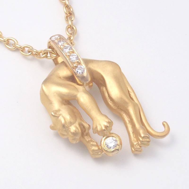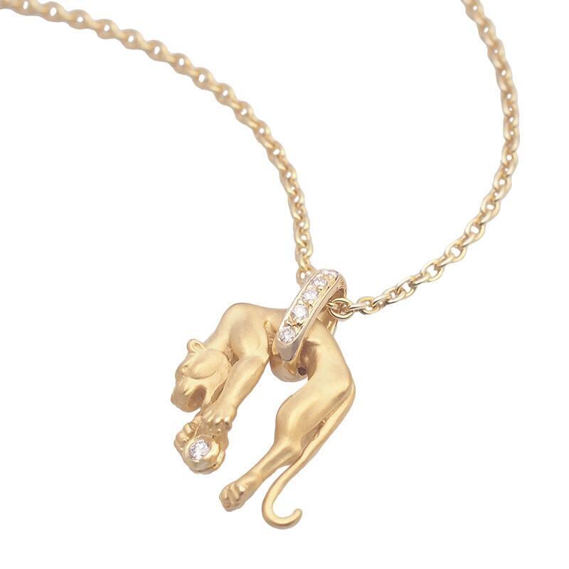 備考:パンサー(豹)の躍動感あふれる造形と、ダイヤモンドの煌めきが圧倒的な存在感を放つ、カレライカレラのネックレスです。金具に小スレが残っておりますが、こちらは仕上済商品の為、全体的に状態の良いお品でございます。