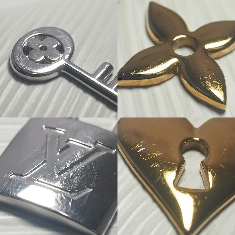 備考:ヴィトンのアイコニックな“ツイストロック”を主役にした「ポルトフォイユ・ツイスト コンパクト」。こちらはハートやパドロックなどを組み合わせた「ラブロック」シリーズの特別なデザインで、遊び心とエレガンスが絶妙に融合した3つ折り財布です。2018年50週製造。全体的にスレがあり、外側にシワや汚れ、コバに小傷・割れ・ヒビが見受けられます。金具に傷、小銭入れ内側に汚れが見られますが、通常使用でお気兼ねなくご使用いただけるお品となっております。