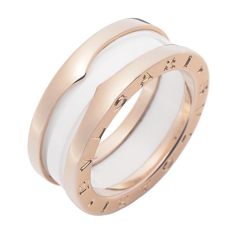 ブルガリ BVLGARI ビーゼロワン B-zero1 2バンド リング 347013 #52 K18PG ホワイトセラミック 仕上済