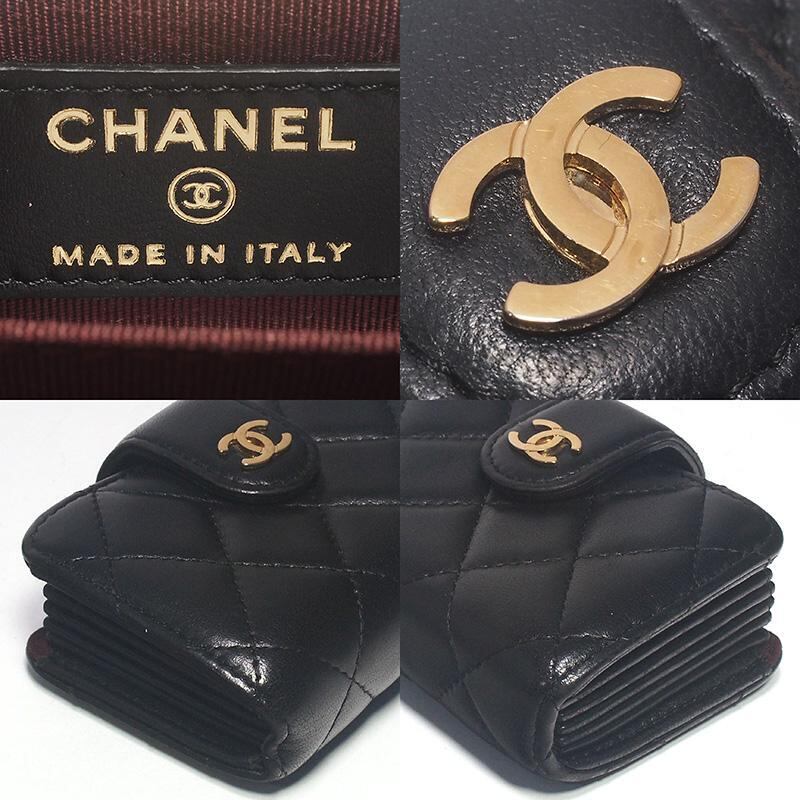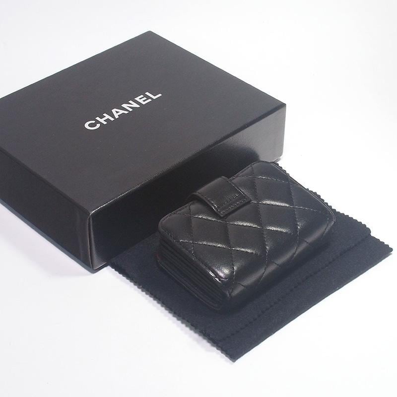シャネル CHANEL マトラッセ カードケース ブラック ラムスキン