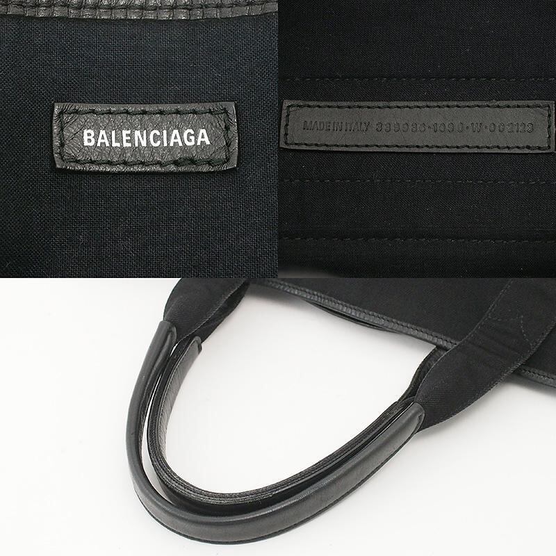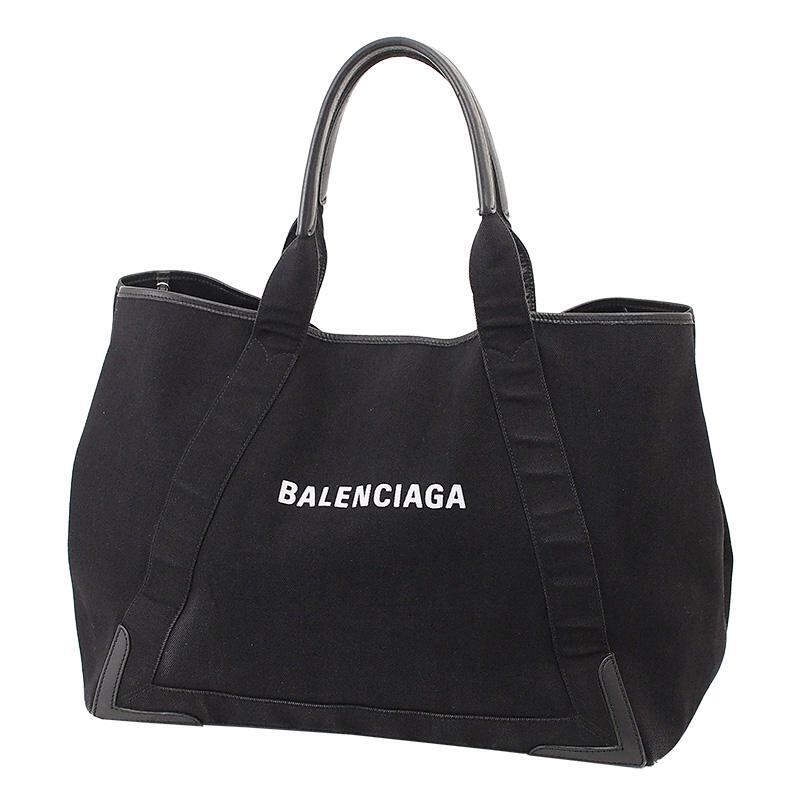 バレンシアガ BALENCIAGA ネイビー カバス M トートバッグ 339936 ブラック キャンバス レザー