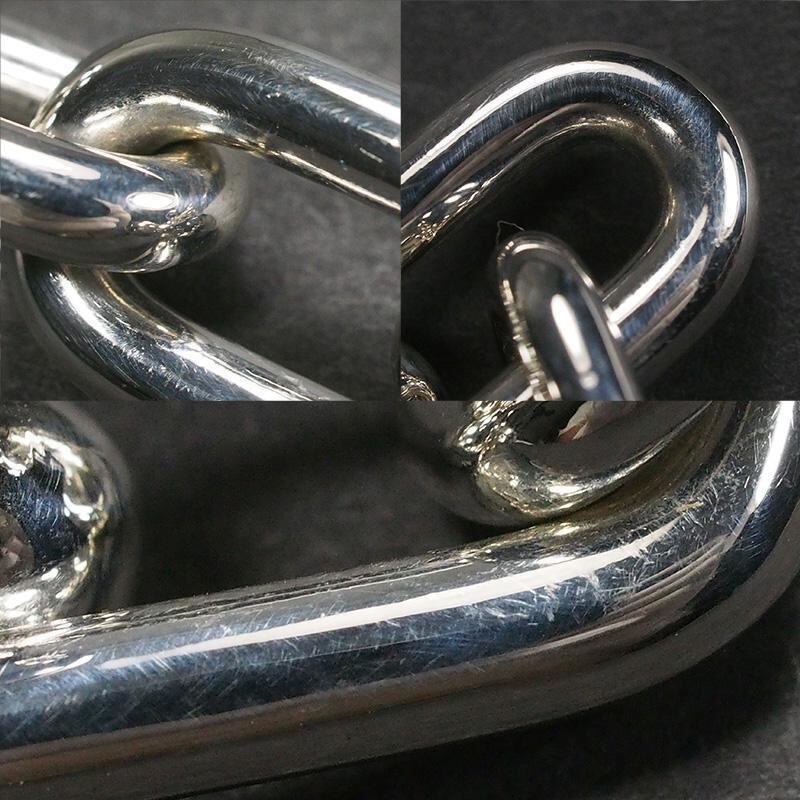 備考:大ぶりで存在感のあるリンクを、グラジュエーション(徐々にサイズを変える)させて配置することで、力強さとリズム感を演出する「ハードウェア グラジュエイテッド リンク ネックレス」です。小スレが残っておりますが、こちらは仕上済商品の為、状態の良いお品でございます。