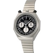 備考:6ヶ月保証付き。愛らしいパンダのモチーフが魅力の、シチズンとジャムホームメイドのコラボレーションモデル。ケースの12時位置に配置されたプッシュボタンがまるでツノのように見えることから「ツノクロノ」の愛称で呼ばれてきた、ユニークで遊び心あふれる一本です。通常使用時に大きく目立つような傷は無く、全体的に良い状態のお品です。
