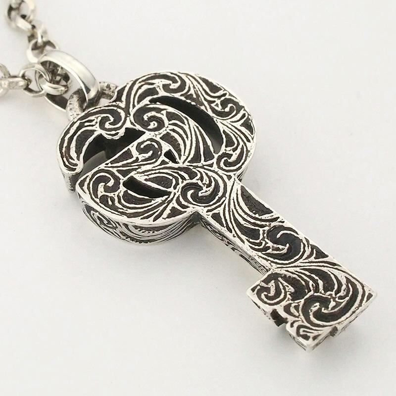 備考:エイジングフィニッシュが施されており、使い込んだような深みのある風合いを表現した「ダブルG キーペンダント ネックレス」です。トップにスレ、金具に小傷が残っておりますが、こちらは仕上済商品の為、状態の良いお品でございます。