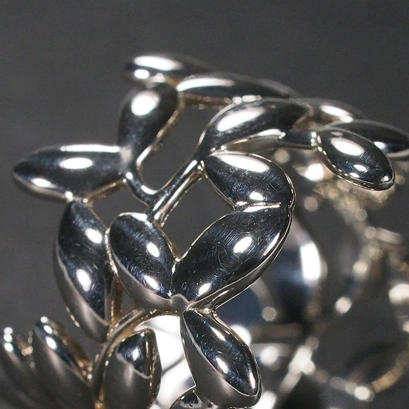 備考:ティファニーのデザイナー"パロマ・ピカソ"が手掛けた「オリーブ リーフ」リング。枝葉の繊細な曲線や重なりを丁寧に表現しており、指元に優しく寄り添うような、エレガントなデザインとなっています。若干の小スレが残っておりますが、こちらは仕上済商品の為、全体的に状態の良いお品でございます。