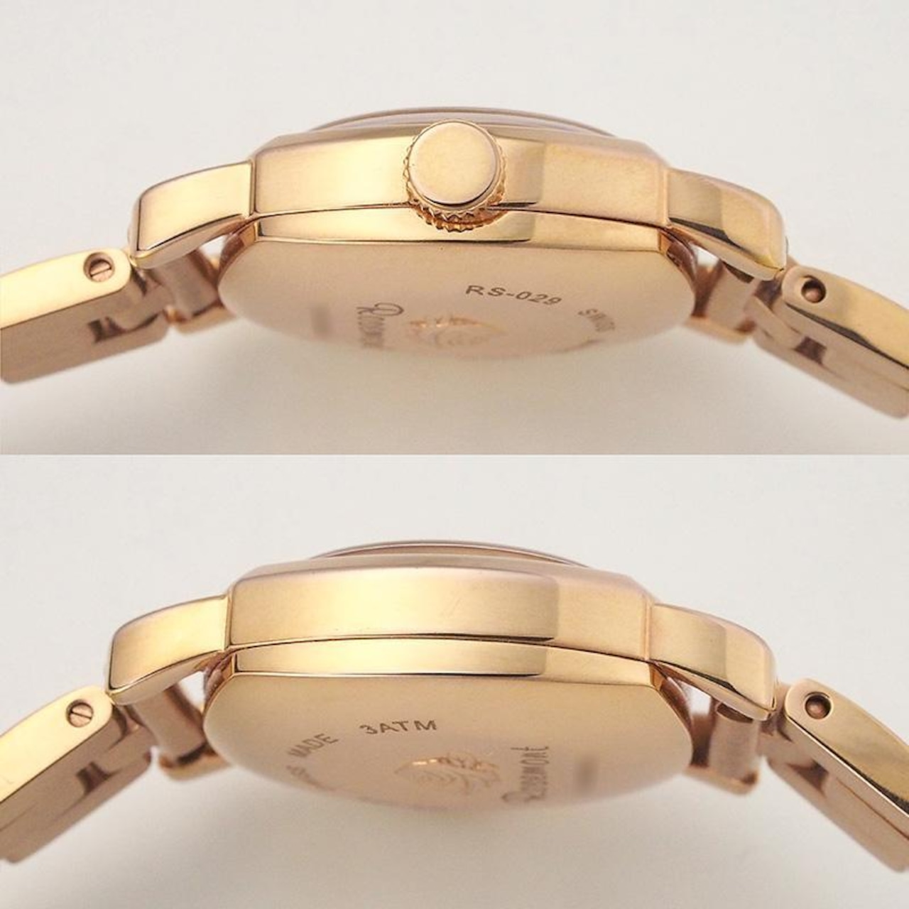 備考:6ヶ月保証付き。スイス発の人気ブランド・ロゼモンが贈る、ミニチュアローズシリーズのクラシカルな魅力と現代的な洗練を兼ね備えたレディスウォッチです。ベゼルに若干の小傷、ベルトに擦れや小傷がございますが、通常使用時に大きく目立つような傷は無く、全体的に良い状態のお品です。