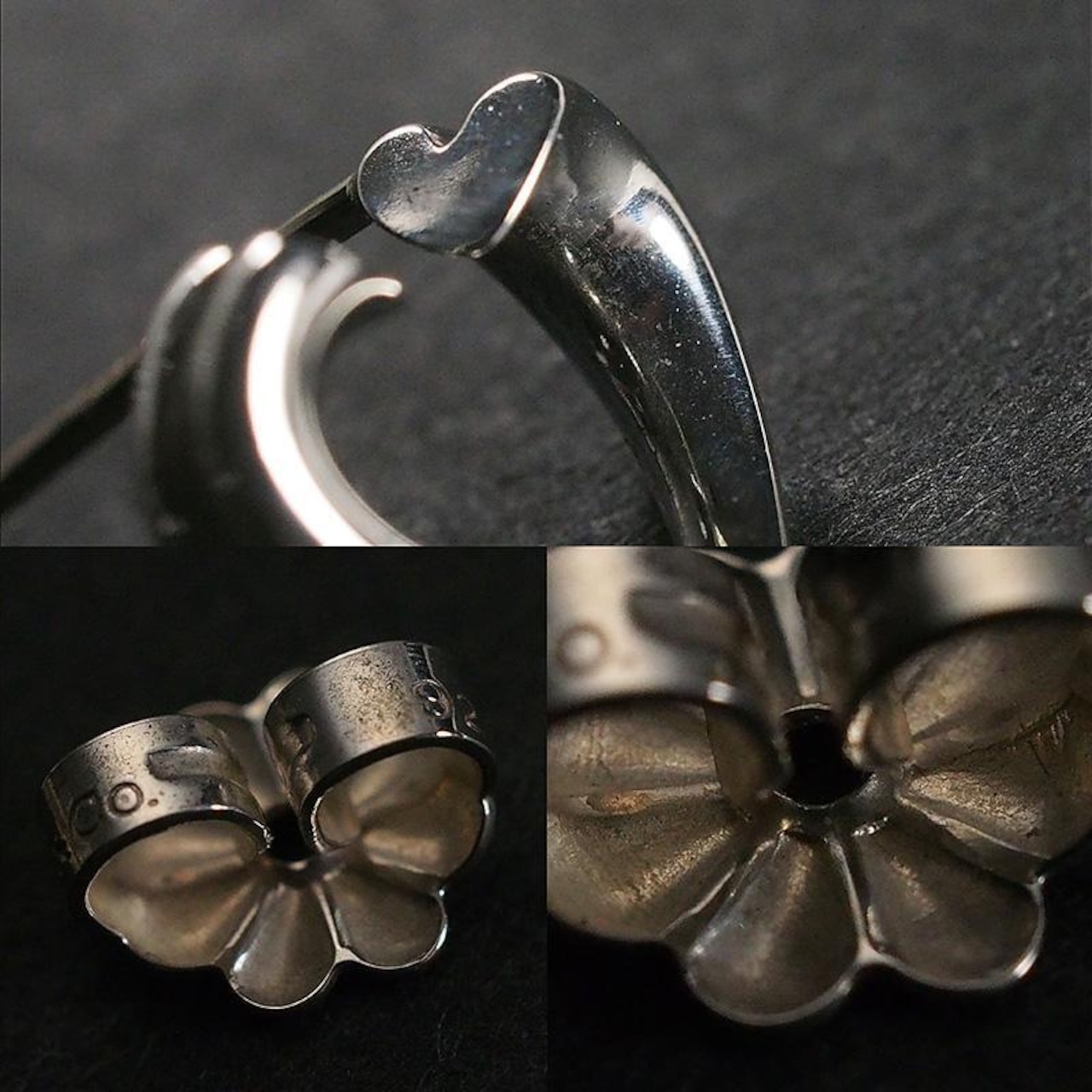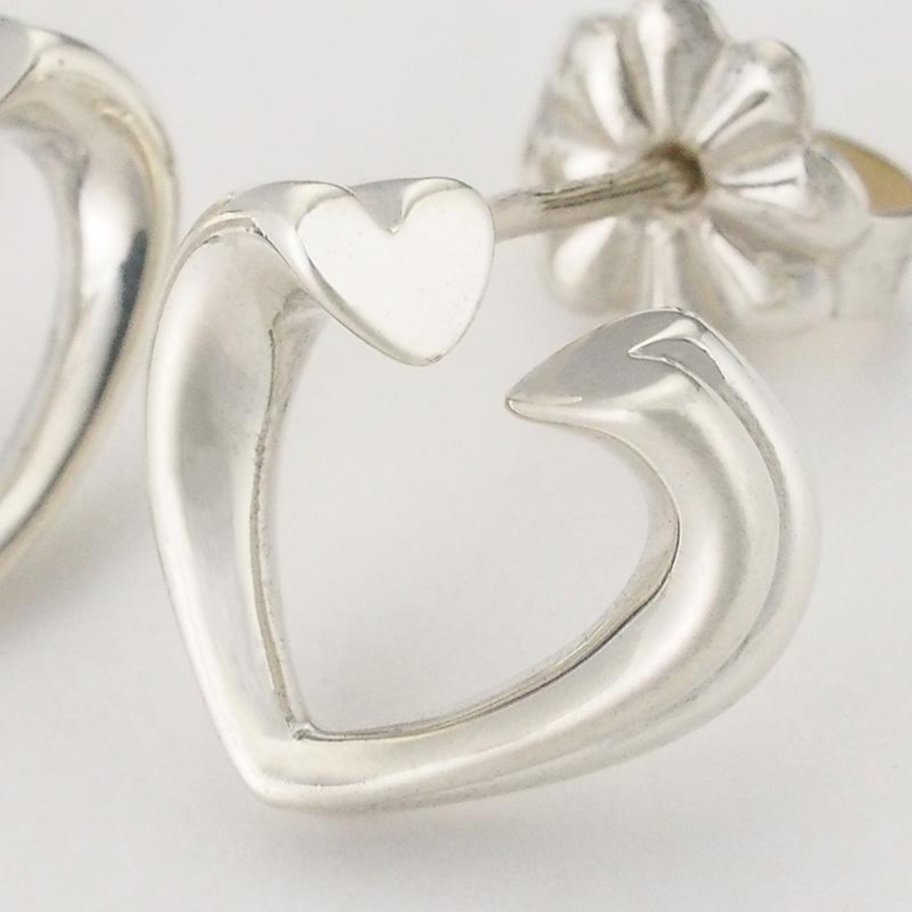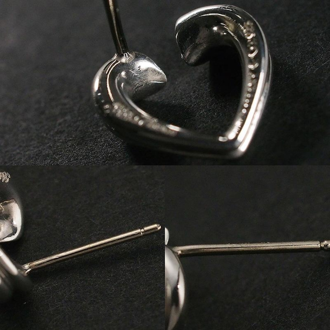 備考:洗練されたハートフォルムに優しい表情を宿し、日常使いから特別な場面まで愛らしくも品格のあるアクセントをプラスしてくれるジュエリーです。ポスト部分にくすみがあり、モチーフ内側にルーペで確認できる程度の若干の汚れが見られますが、装着時に目立つような大きな傷は無く、良い状態のお品となっております。