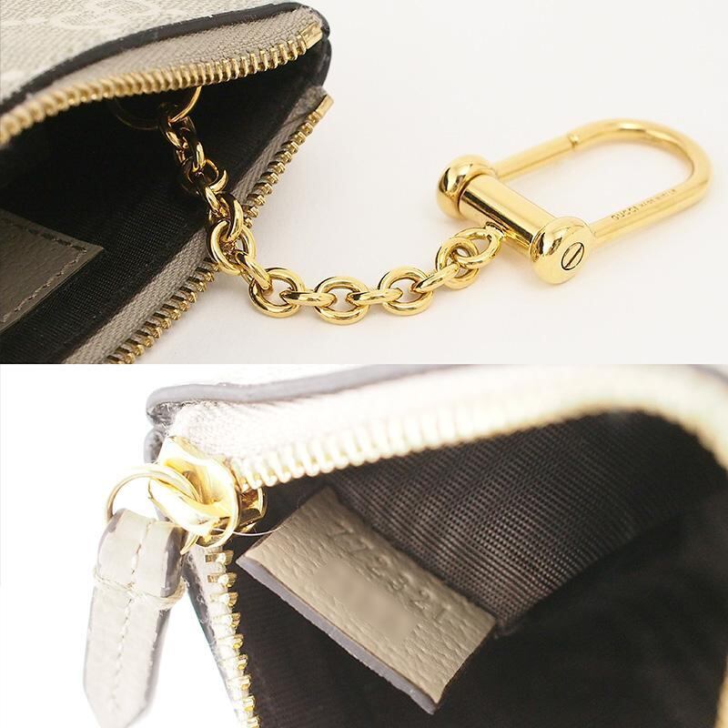 備考:クラシックなGGスプリームキャンバスを、ニュートラルなベージュ×オートミールカラーで仕上げた上品なキーケースです。表面の隅に色移り、金具に剥がれやスレ、プルふちにスレがございますが、通常使用でお気兼ねなくご使用いただけるお品となっております。