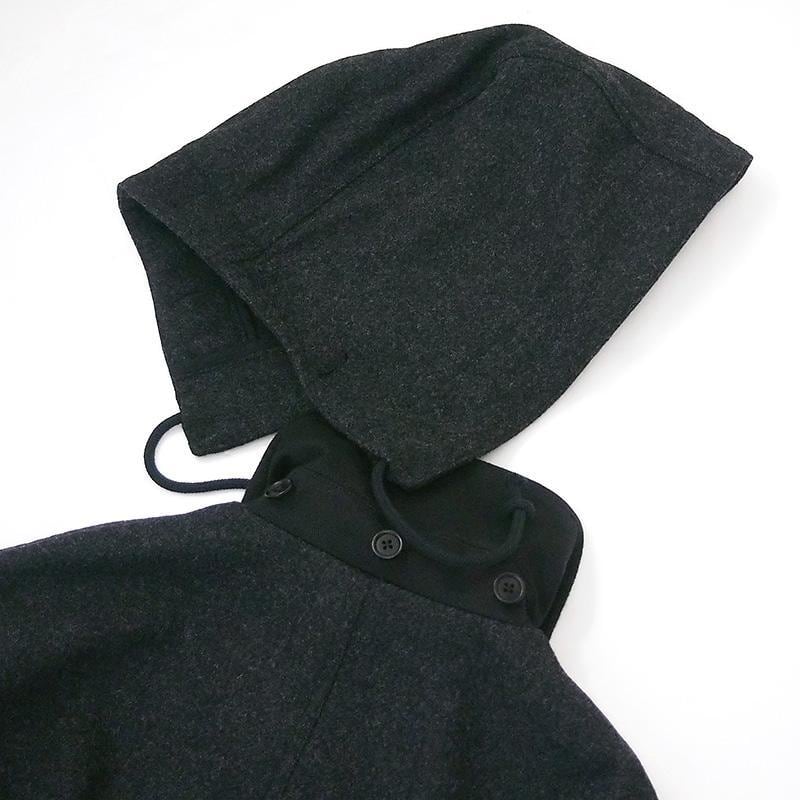 備考:カジュアルな要素と上質な素材感を絶妙なバランスで融合させた一着です。付属のフードはボタンで簡単に着脱可能で、その日の気分やスタイリングに応じて、表情を変えて楽しめる柔軟さも魅力です。保管時のたたみジワが見られますが、通常使用時に大きく目立つような傷は無く、全体的に良い状態のお品です。