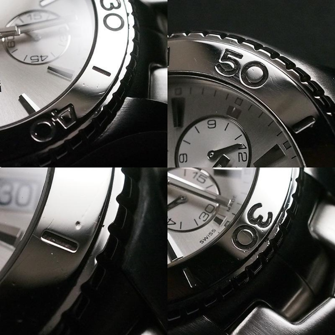 備考:6ヶ月保証付き。クロノグラフ機能を備えた精悍なダイヤルは、計測器としての信頼性と、ラグジュアリーウォッチとしての風格を両立。ビジネスシーンにもカジュアルスタイルにも自然に溶け込み、持つ人の品格を静かに引き立てます。2025年10月電池交換済。ベゼル・ケース・尾錠にスレ、ケース・裏蓋に僅かなキズが見られますが、こちらは仕上済商品の為、全体的に状態の良いお品でございます。