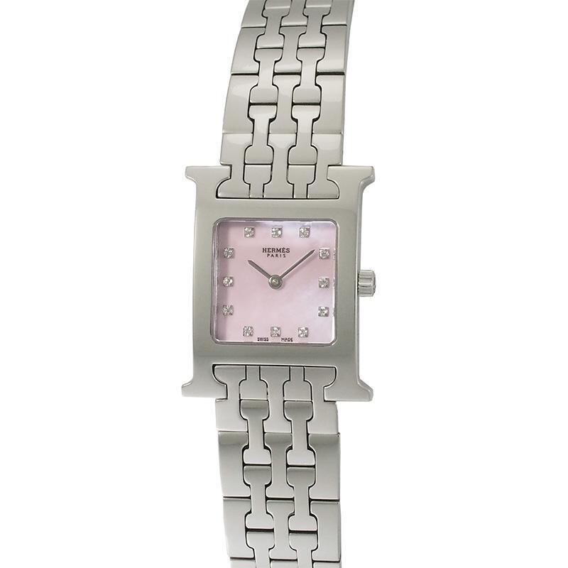 エルメス HERMES Hウォッチ 12P ダイヤモンド シェル クオーツ SS HH1.210 仕上済 電池交換済