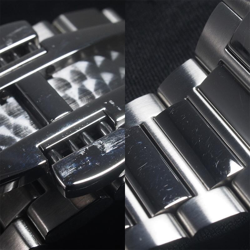 備考:6ヶ月保証付き。端正なフェイスデザインとバランスの取れたインデックス配置により、落ち着きと品格を兼ね備えた佇まいを実現した一本です。ベゼル・ベルト・バックル・プッシュボタンにわずかなスレがございますが、こちらは展示未使用品の為、とても良い状態のお品でございます。