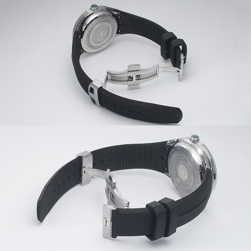 備考:6ヶ月保証付き。印象的なケースデザインと個性的なフェイスは、手元に強いインパクトを与え、スタイルのアクセントとしても活躍します。裏蓋にわずかなスレがございますが、こちらは未使用品の為、とても良い状態のお品でございます。また、未使用の為、裏蓋に保護シールが貼られております。