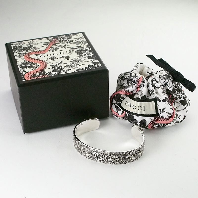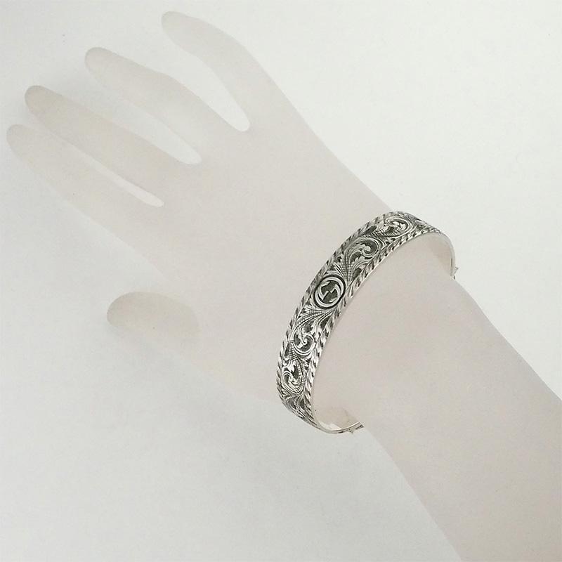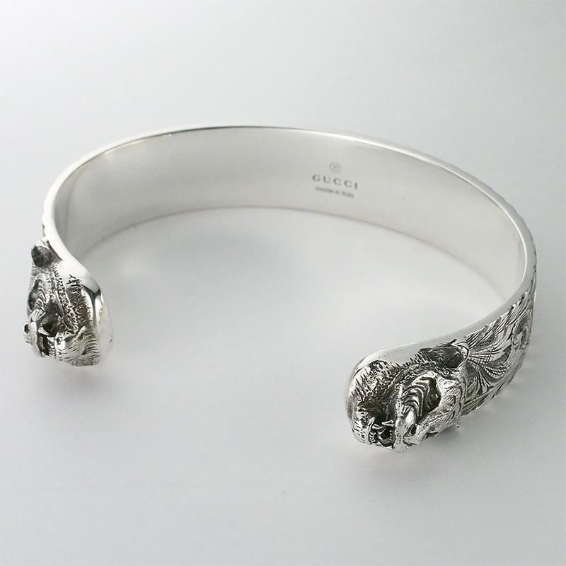 詳細:グッチ GUCCI インターロッキングG アラベスク キャットヘッド バングル #17
