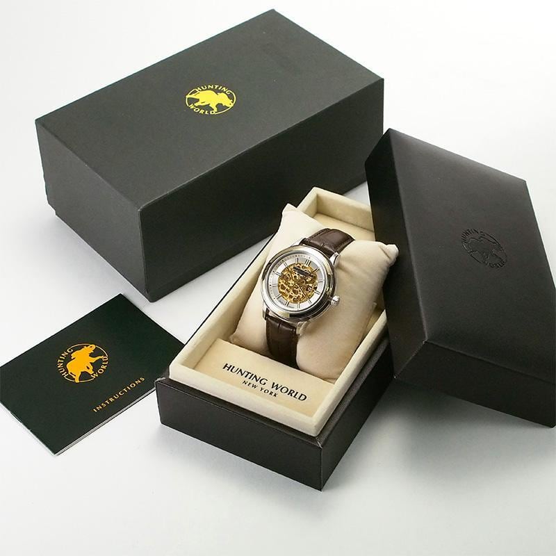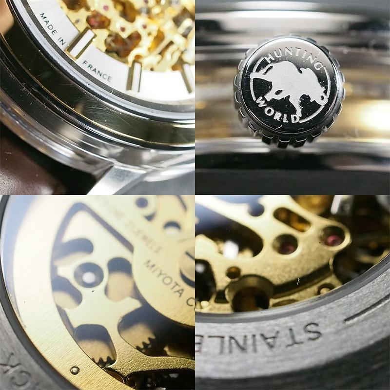 ハンティングワールド HUNTING WORLD スケルトン SS K18YG 皮ベルト 自動巻 メンズ 未使用品 HW030