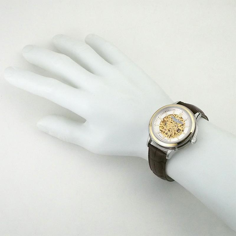 備考:6ヶ月保証付き。精緻なムーブメントの鼓動を楽しめるスケルトンダイヤルに、ステンレススチールケースとK18イエローゴールドの上質な輝きが調和し、洗練された存在感を放ちます。保護シールが貼られております。ガラス・裏蓋に微小な小傷、ベゼル・リューズにわずかなスレがございますが、こちらは未使用品の為、とても良い状態のお品でございます。