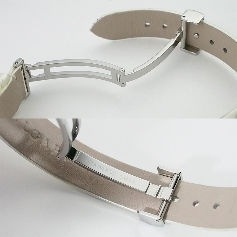 備考:6ヶ月保証付き。文字盤に配された12Pダイヤモンドは、繊細でありながら確かな存在感を放ち、光を受けるたびに上質な輝きを添えます。日々のスタイルに優雅な輝きを添え、着ける人の魅力を引き立てるウォッチです。ガラス・裏蓋にわずかな小傷、ケースサイドにわずかなスレ、ベルトにわずかな汚れがございますが、通常使用時に大きく目立つような傷は無く、全体的に良い状態のお品です。