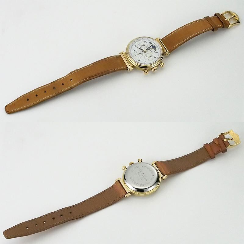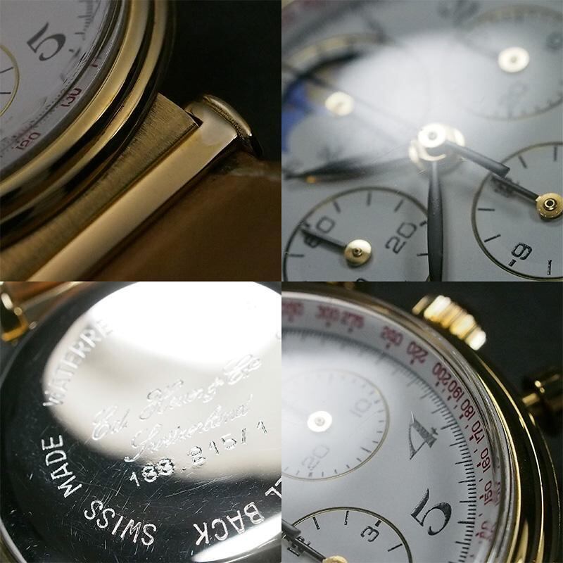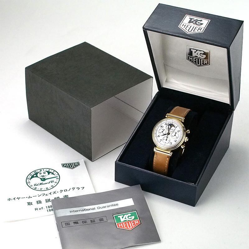 備考:6ヶ月保証付き。タグ・ホイヤーの原点に立ち返る意義深いモデルとして、ブランド創立125周年を祝して製造された限定クロノグラフ。タグ・ホイヤーの歴史と時計製造の奥深さを感じられる、特別なタイムピースです。ガラスにわずかな小傷、ベゼル・裏蓋にわずかなスレ、ベルト・ラグにわずかな黒ずみ、ベルト留め具にはがれがございますが、大きく目立つような傷は無く、良い状態のお品となっております。