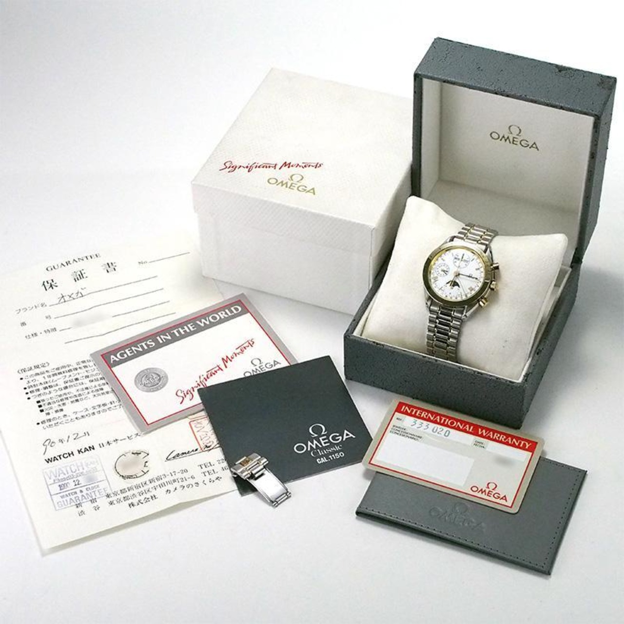 備考:6ヶ月保証付き。スポーティーなスピードマスターの伝統に、ラグジュアリーな輝きが加わり、腕元に格別の存在感をもたらします。クラシックな気品と機械式時計ならではの奥深い魅力を兼ね備えた、特別感あふれる一本です。ベルト・ガラス・ベゼル・裏蓋・バックルにわずかなスレがございますが、こちらは仕上済商品の為、状態の良いお品でございます。