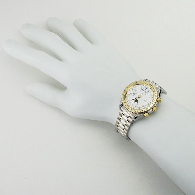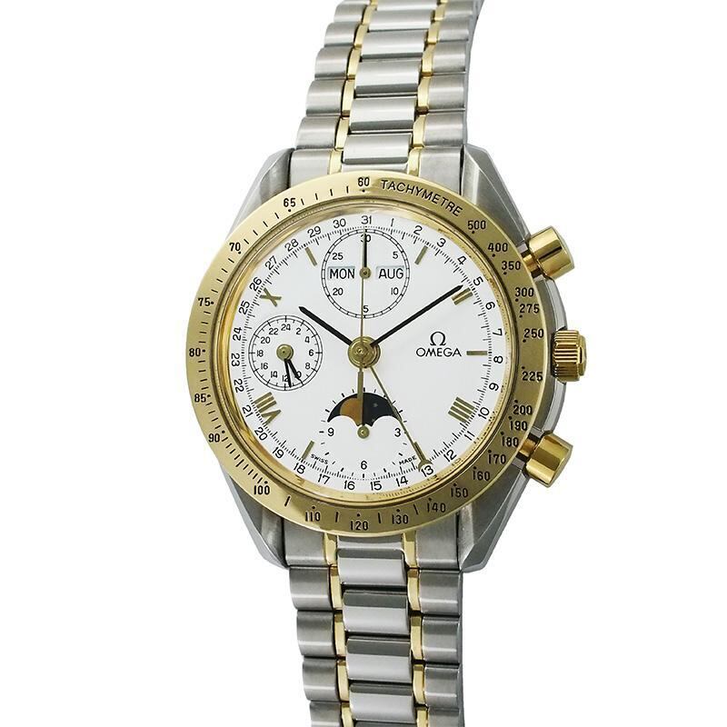 オメガ OMEGA スピードマスター トリプルカレンダー ムーンフェイズ SS YG 自動巻 クロノグラフ 仕上済 オートマ メンズ イエローゴールド ホワイト 白 3336.20