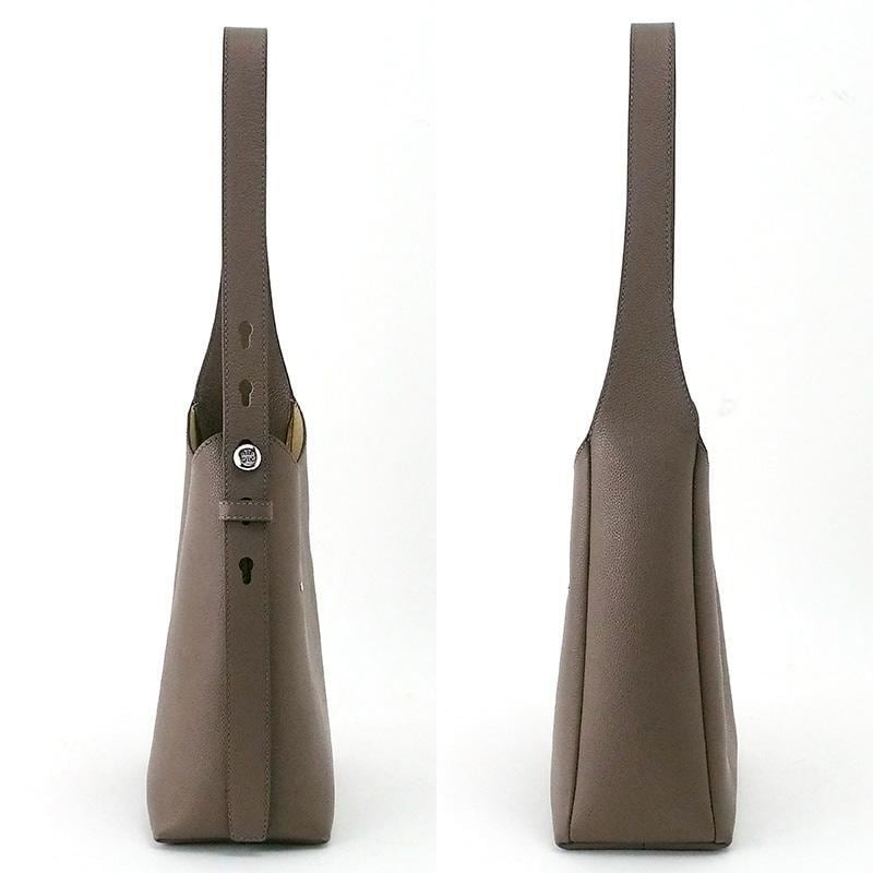 備考:毎日の装いに寄り添う軽やかな佇まいながら、しっかりとした素材感と絶妙なフォルムが上質さを感じさせる逸品です。表面角・金具部分にわずかなスレ、ステッチ・コバ部分にわずかな小傷がございますが、大きく目立つような傷は無く、良い状態のお品となっております。