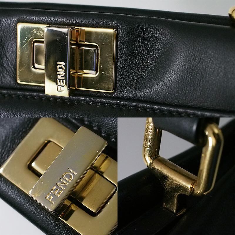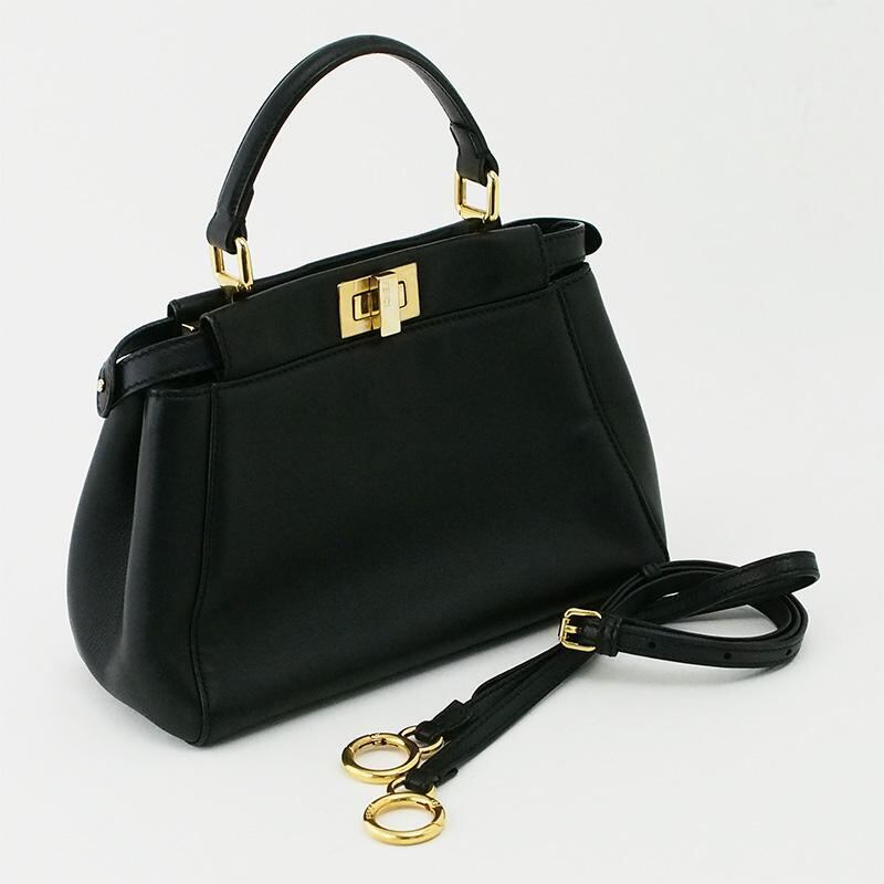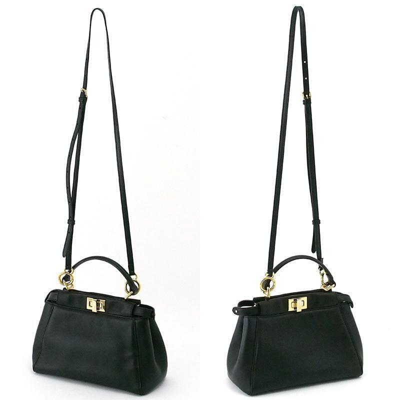 詳細:フェンディ FENDI ピーカブー ミニ 2WAYバッグ ブラック GP金具 黒 ショルダーバッグ ハンドバッグ ゴールド金具 レザー 8BN244