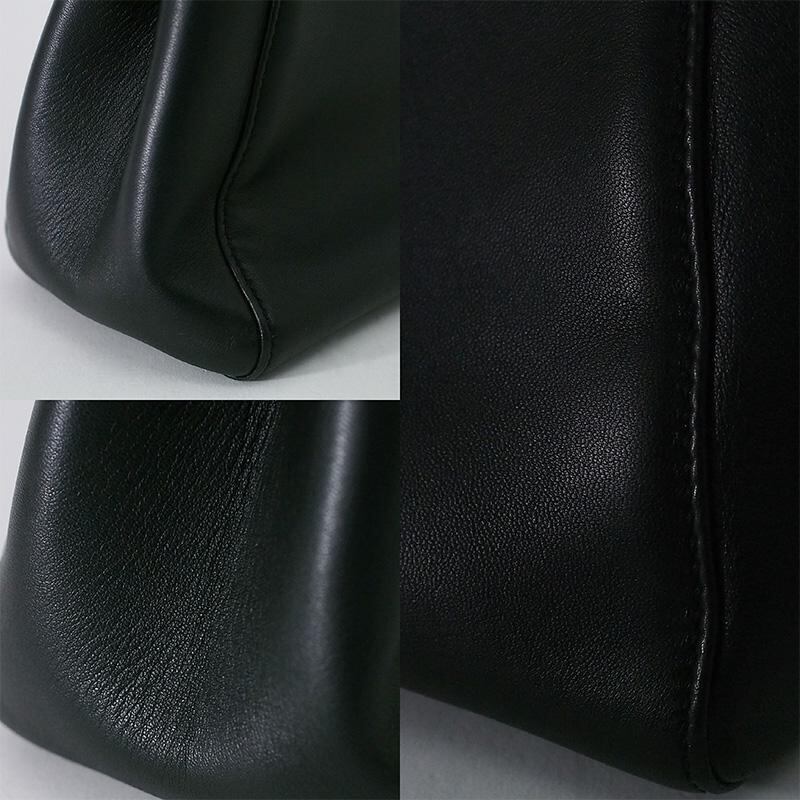 備考:都会的なコーディネートにも馴染みやすく、ドレスアップやカジュアルシーン問わず幅広く合わせらる、装いの品格をさりげなく上げるバッグです。金具に保護シールが貼られております。金具にわずかなスレ・色はがれ、底面にわずかなスレ・跡、表面にわずかな型崩れ・シワがございますが、通常使用時に大きく目立つような傷は無く、全体的に良い状態のお品です。
