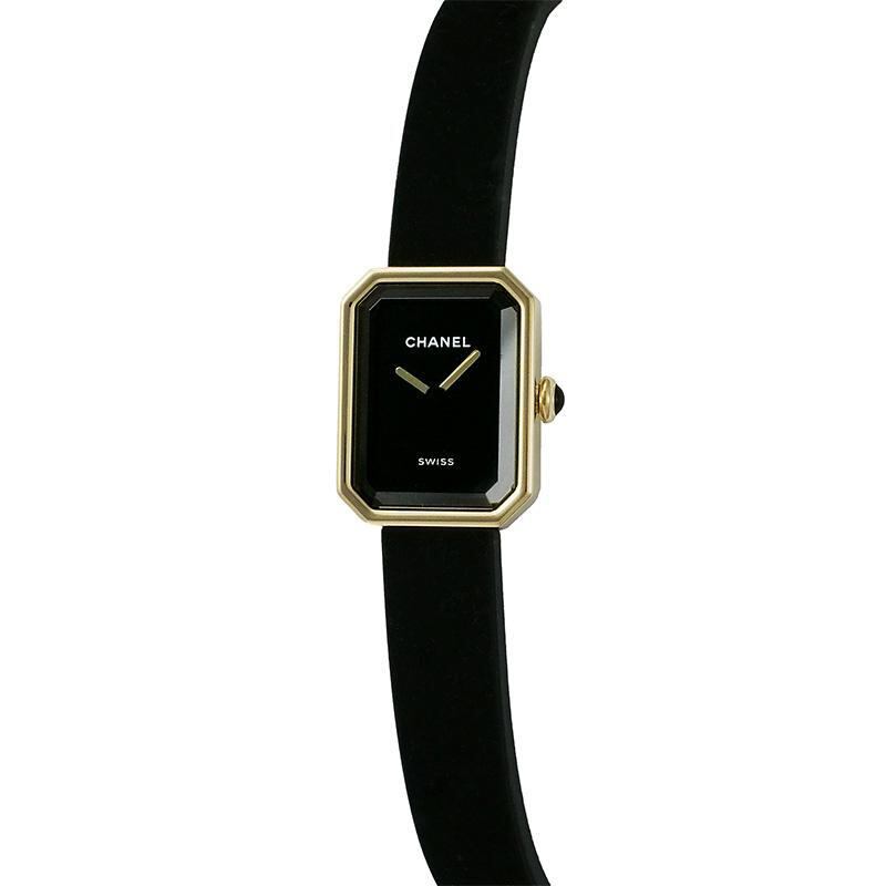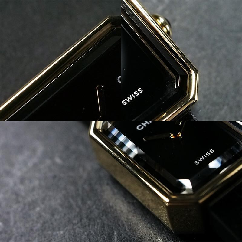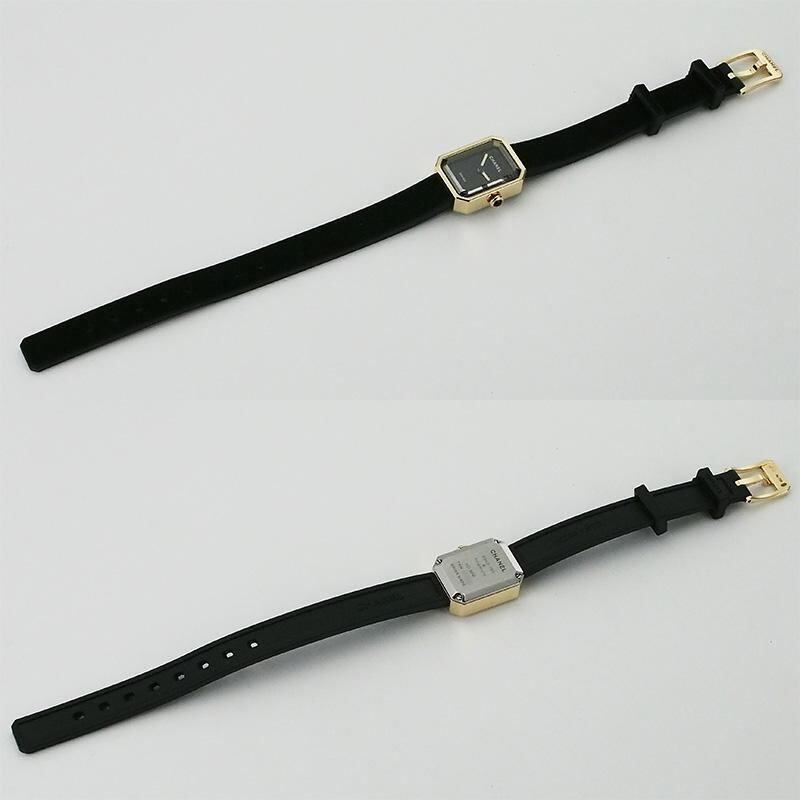 詳細:シャネル CHANEL プルミエール リボン クオーツ YG チタン ヴェルベット 仕上済 レディース ブラック 黒 イエローゴールド 防水 H6125