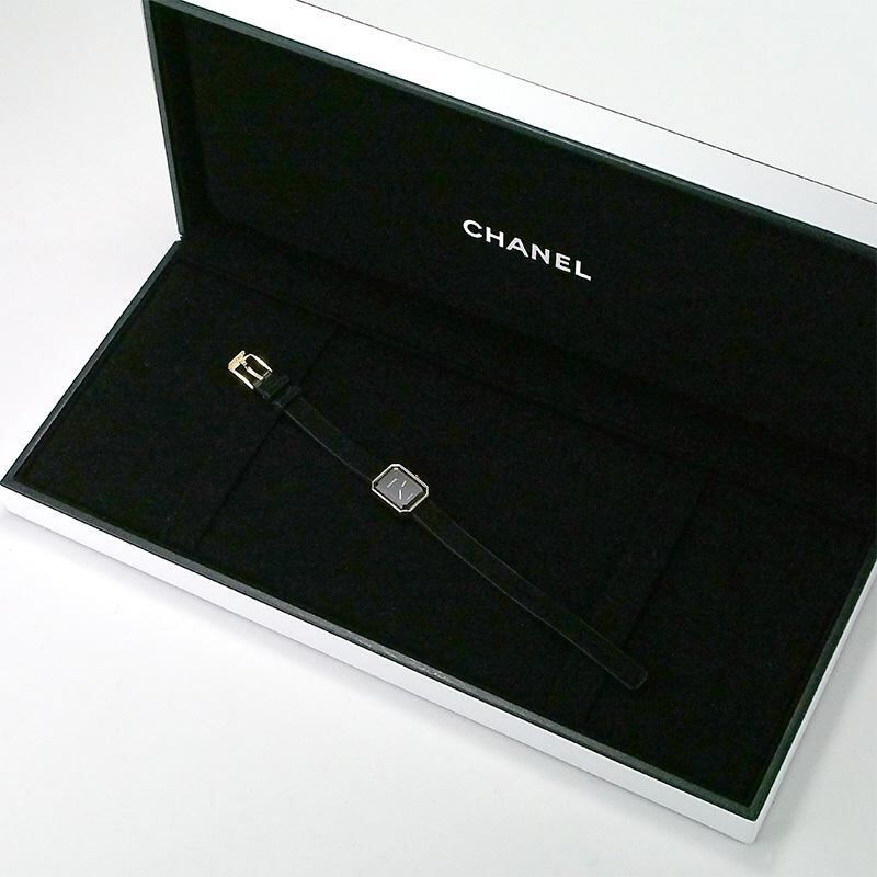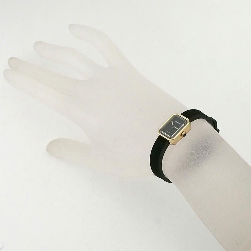 シャネル CHANEL プルミエール リボン クオーツ YG チタン ヴェルベット 仕上済 レディース ブラック 黒 イエローゴールド H6125