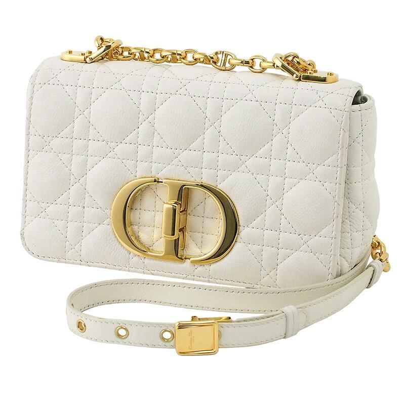クリスチャン・ディオール Christian Dior カロ スモール カナージュ ホワイト GP金具 チェーン ショルダーバッグ 白 レザー カーフスキン M9241UWHC