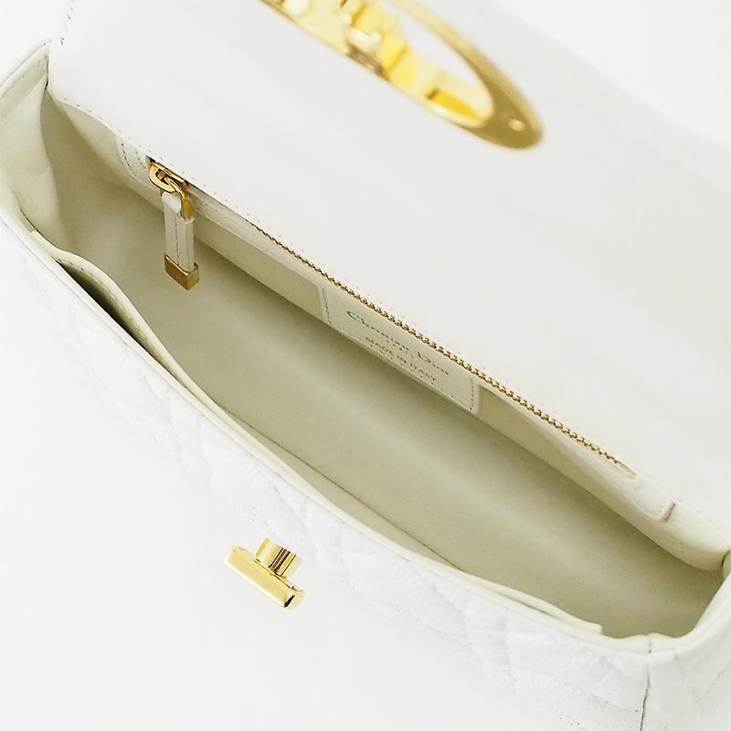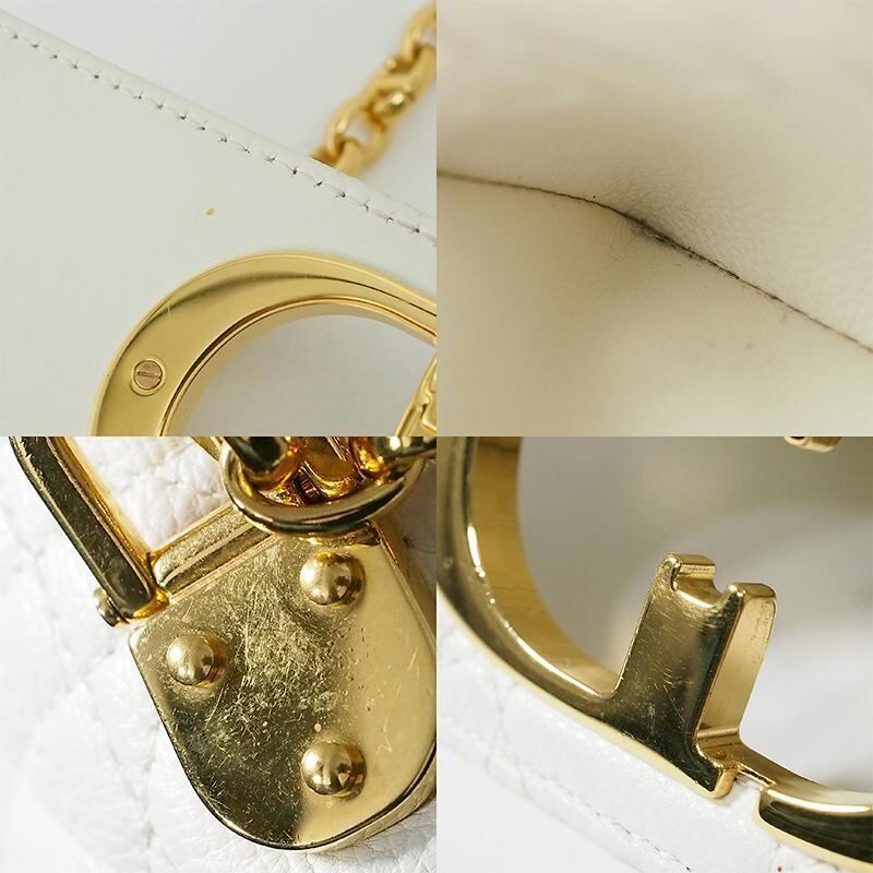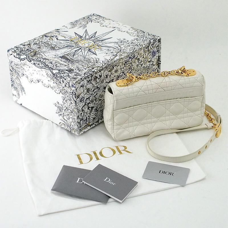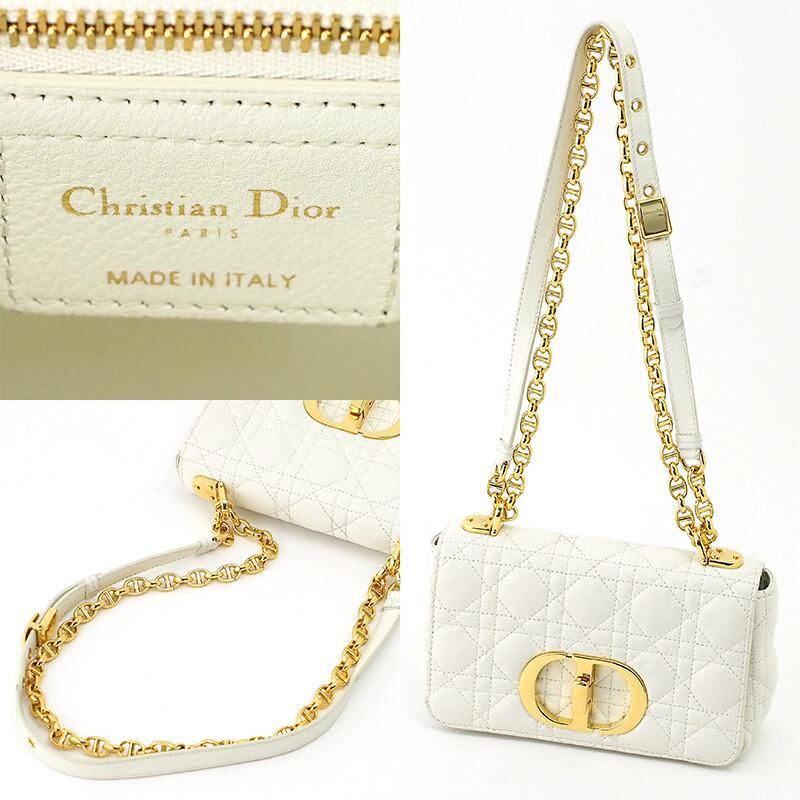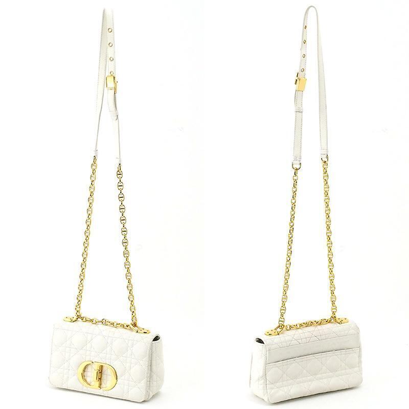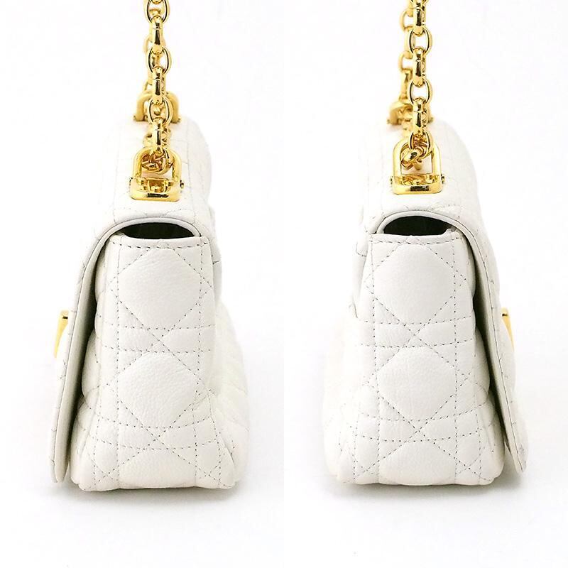 詳細:クリスチャン・ディオール Christian Dior カロ スモール カナージュ ホワイト GP金具 チェーン ショルダーバッグ 白 レザー カーフスキン M9241UWHC