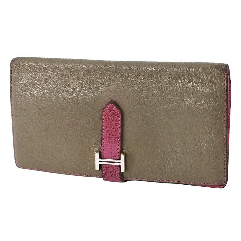 エルメス HERMES ベアン エトゥープ×ピンク □N刻印 2010年製造 長財布 ウォレット 小銭入れ