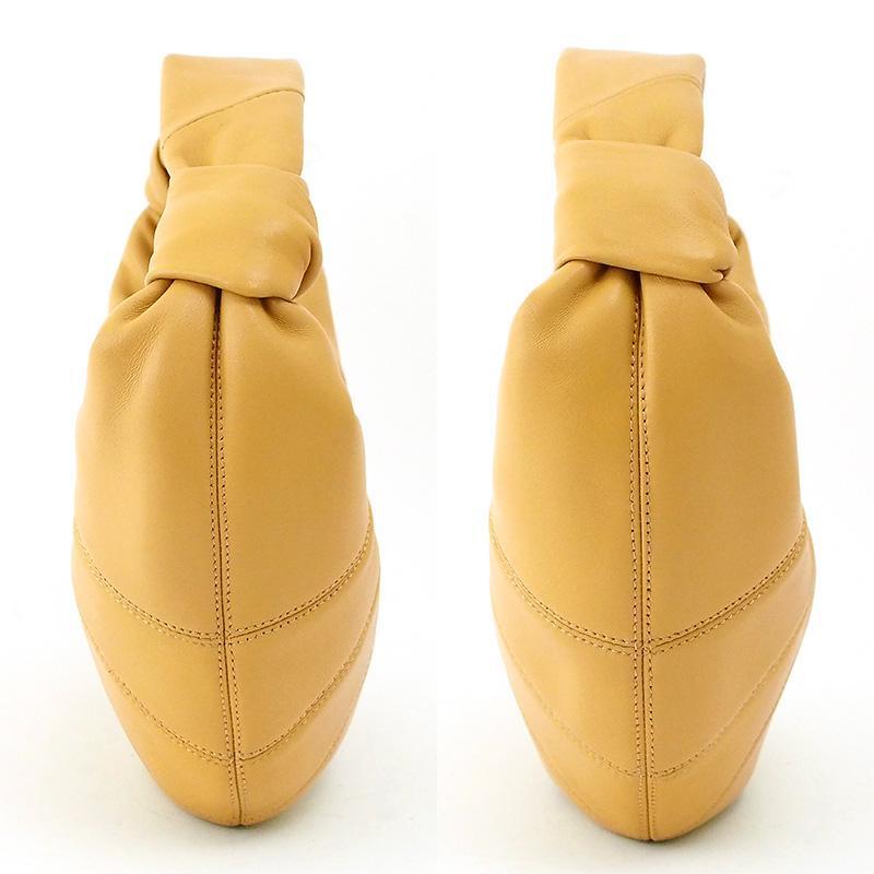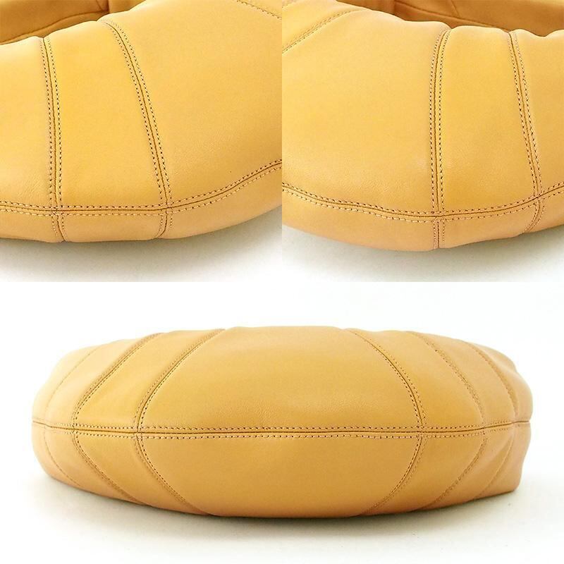 備考:やわらかな曲線を描くクロワッサン型のフォルムが印象的で、身体に自然と寄り添うデザインは、持つだけでスタイリングに奥行きを与えます。無駄を削ぎ落としたシンプルな佇まいの中に個性が光る上質な逸品です。金具部分にわずかな小傷、ファスナー持ち手にわずかなはがれがございますが、通常使用時に大きく目立つような傷は無く、全体的に良い状態のお品です。