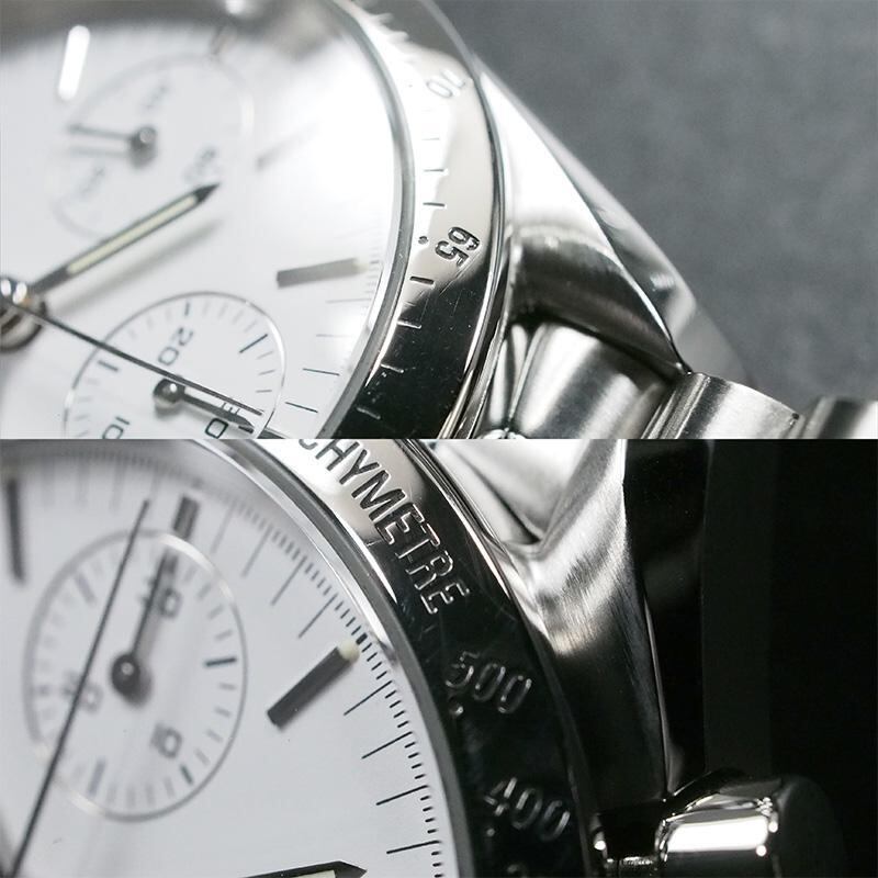 備考:6ヶ月保証付き。長い歴史を誇るスピードマスターシリーズの中でも、洗練されたデザインと実用性を兼ね備えた魅力的なモデルです。クラシックでありながら現代的なエッセンスも感じさせ、幅広いスタイルに品格を添えます。ベゼル・リューズ・裏蓋・バックルにわずかなスレがございますが、こちらは仕上済商品の為、状態の良いお品でございます。