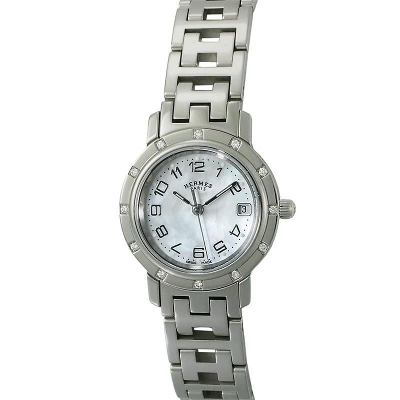 詳細:エルメス HERMES クリッパー ナクレ 12Pダイヤモンド ベゼル 仕上/電池交換済 SS クオーツ レディース CL4.230