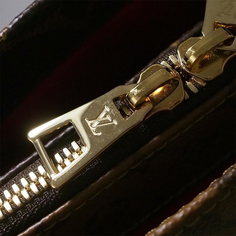 備考:大胆にあしらわれたジャイアント・モノグラムが視線を惹きつけ、コーディネートに華やかなインパクトを添えます。持つだけで洗練された印象を演出する、タイムレスかつモダンな逸品です。最新の商品にはシリアル番号は刻印されていません。金具部分にわずかなスレがございますが、こちらは未使用品の為、とても良い状態のお品でございます。