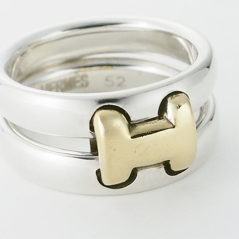 詳細:エルメス HERMES オランプ リング SV925 シルバー K18YG イエローゴールド #52 10.5号 仕上済