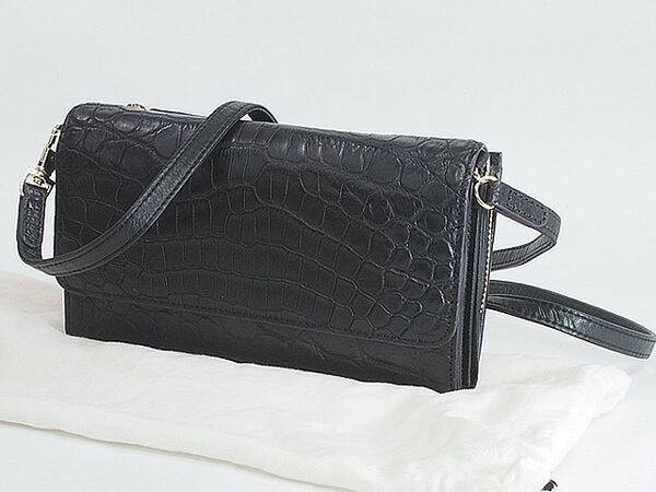 備考:落ち着いた雰囲気を醸し出すブラックカラーが素敵な、大人の魅力溢れるコッコクリスターロのクロコダイル製ショルダーウォレットです。こちらは未使用・新品です。