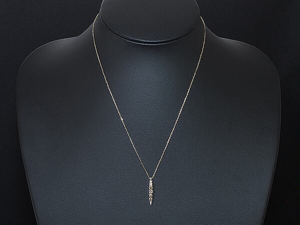 備考:リーフ型モチーフに優しい煌めきのブラウンダイヤをセットした、カシケイのモード感漂う「ネイキッド」シリーズ、肌に馴染む18金ブラウンゴールド製ネックレスです。トップに僅かな小傷が残っておりますが、こちらは仕上済商品の為、全体的に輝きのあるお品となっております。