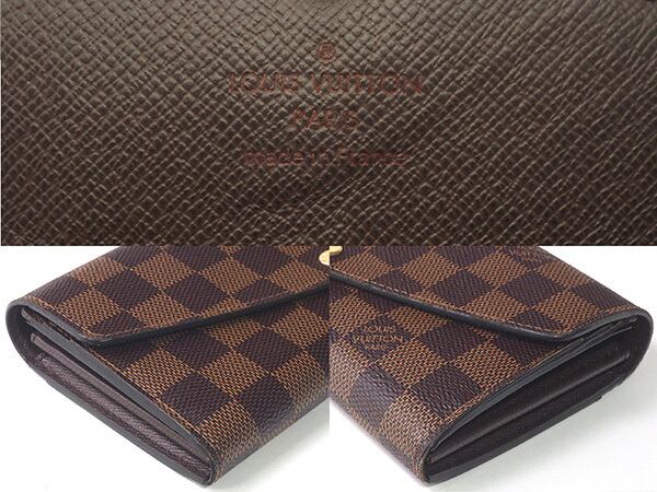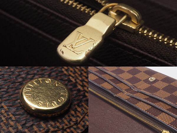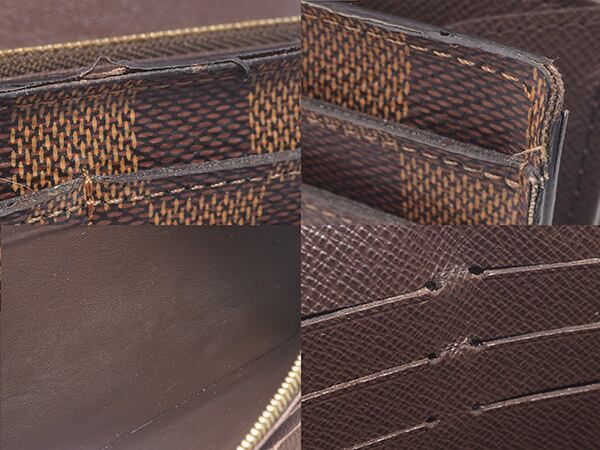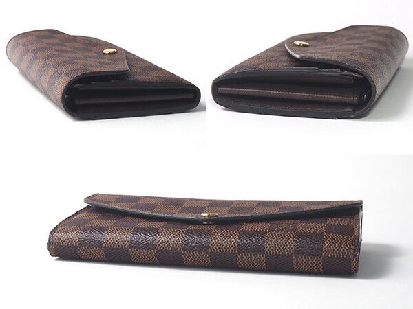 備考:エンヴェロップ型の長財布「ポルトフォイユ・サラ」にダミエ・エベヌ キャンバスがとても素敵な長財布です。2019年32週製造。金具にスレやコーティングの剥がれがあり、内側に押し跡、カード入れと小銭入れに跡、コバにスレや剥がれが見受けられます。反りの見られる箇所がございますが、通常使用でお気兼ねなくご使用いただけるお品となっております。
