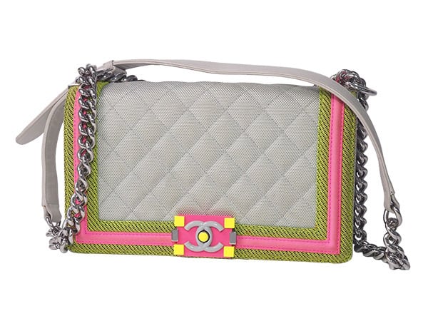 備考:シャープでボーイッシュな要素を取り入れた"ボーイシャネル"の「マトラッセ」。鮮やかなナイロンキャンバス素材が目を惹くショルダーバッグです。バッグ内シールのシリアルNoは「2246****」です。表面・フラップ内側・内側に汚れがあり、角に毛羽立ちとスレ、金具に小傷が見られますが、お気兼ねなくご使用いただけるお品となっております。