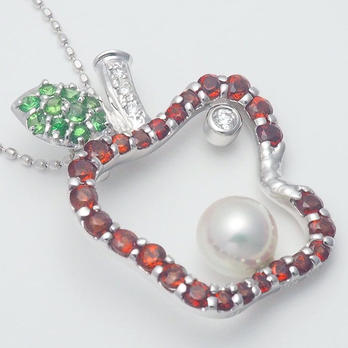 アコヤパール ガーネット グリーングロッシュラーガーネット ダイヤモンド/0.04ct リンゴモチーフ ネックレス K18WG