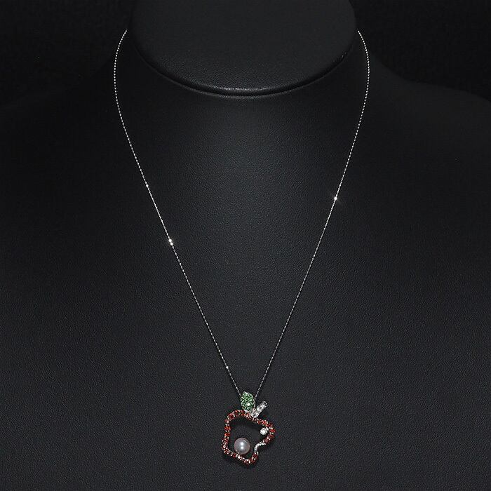 備考:可愛らしいリンゴモチーフを照りの良いアコヤ真珠・ガーネット・ダイヤモンドで飾り立てた、18金ホワイトゴールド製のネックレスです。ガーネットに微細な傷があり、地金にスレが見られますが、大きく目立つような傷は無く、良い状態のお品となっております。