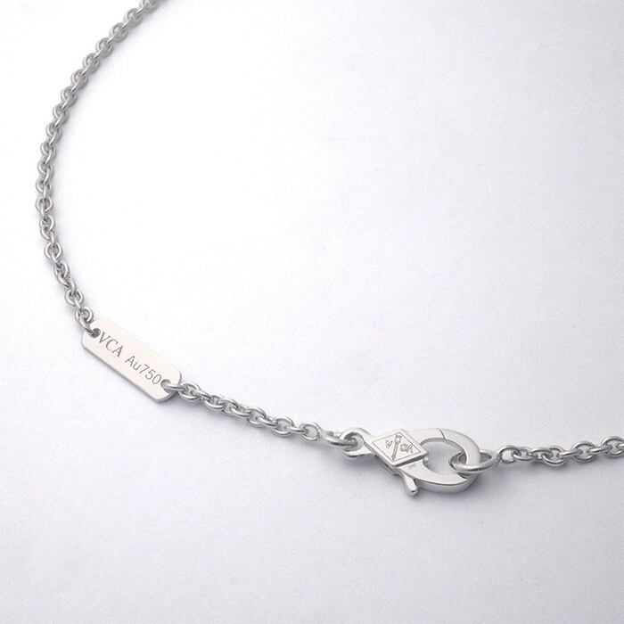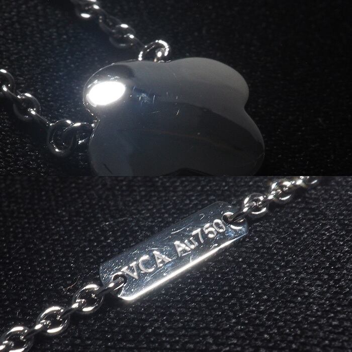 備考:ブランドのアイコニックなモチーフを再解釈した「ピュアアルハンブラ」。ホワイトゴールドのモチーフにダイヤをあしらったエレガントなネックレスです。トップ裏に小スレがあり、プレーと金具に小傷が残っておりますが、こちらは仕上済商品の為、全体的に輝きのあるお品となっております。