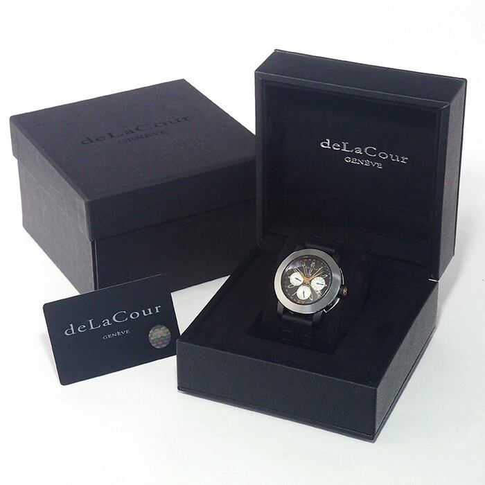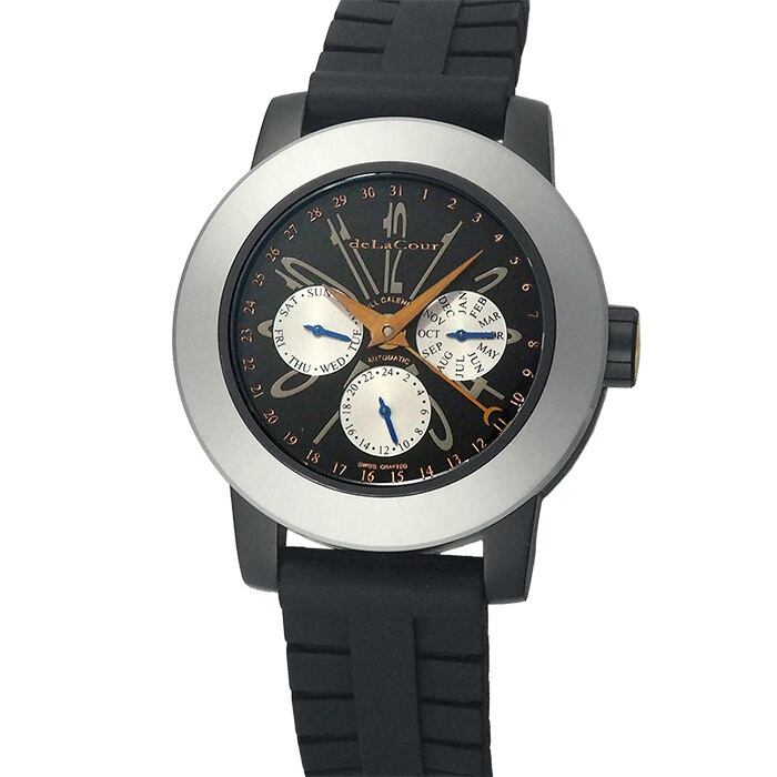 備考:6ヶ月保証付き。2002年に創業したスイスの新興ブランド「ドゥラクール」の、カレンダー機能を搭載した200本限定モデルです。針にコーティングの薄れがあり、ベゼルと裏蓋にスレ、バックルに小スレが見られますが、大きく目立つような傷は無く、良い状態のお品となっております。