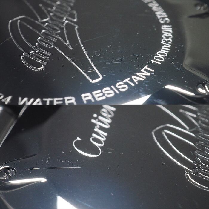 備考:6ヶ月保証付き。ベゼルにローマ数字のインデックスが刻印された「クロノスカフ」。ダイヤルにはカルティエの2Cモチーフがデザインされたモデルです。ベゼルにスレ、ケースに小傷と小さなへこみ、プッシュボタンに小スレ、裏蓋に小傷とスレが残っておりますが、こちらは仕上済商品の為、状態の良いお品でございます。
